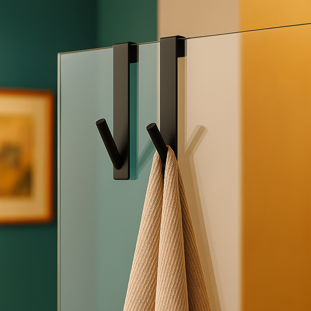 Este toalheiro foi criado para quem busca um ambiente mais funcional, organizado e visualmente limpo. Com instalação simples, sem perfurações e totalmente adaptável à porta de vidro do box, ele se fixa com segurança e oferece suporte estável para toalhas, roupões, roupas ou até bolsas e casacos.