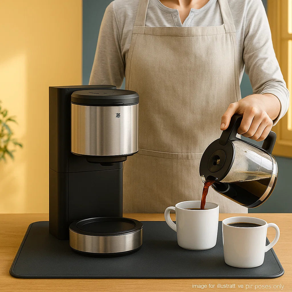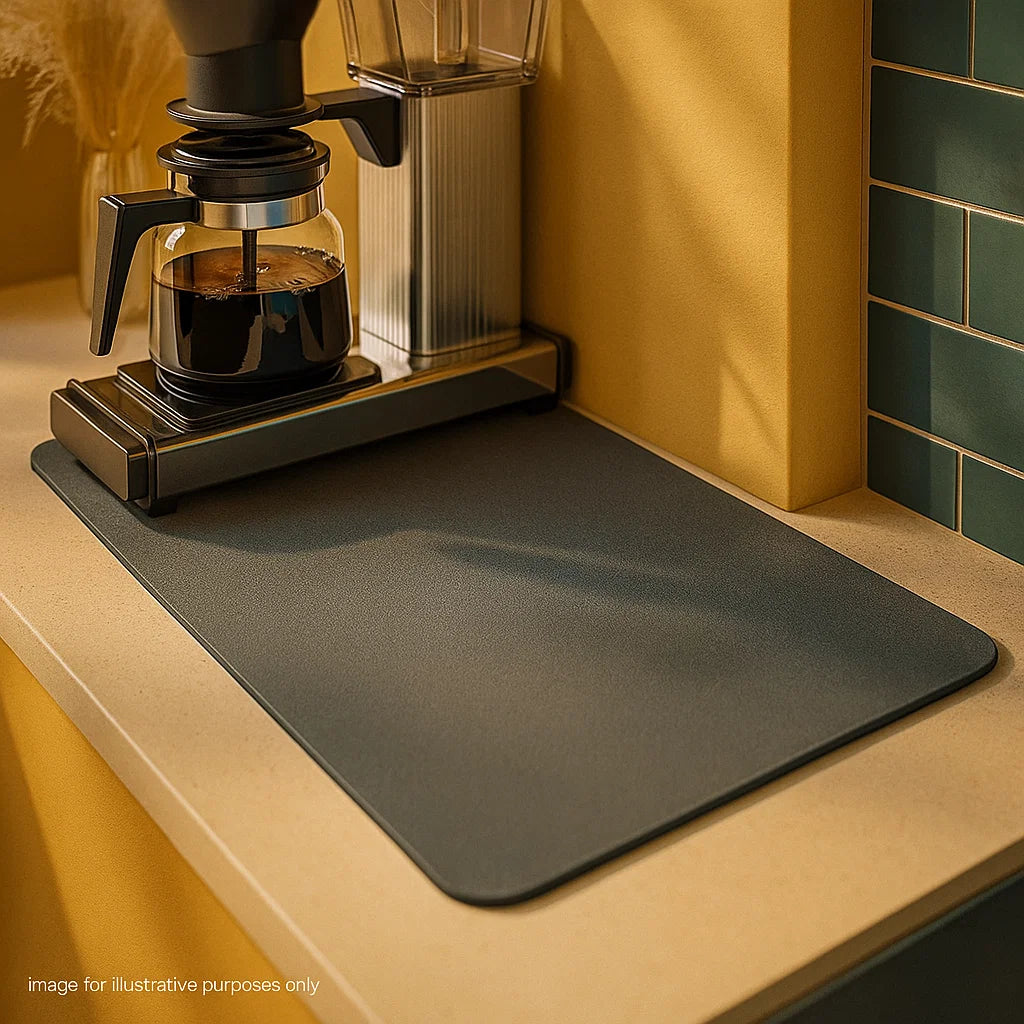 A base antiderrapante mantém o tapete fixo na superfície, mesmo com uso contínuo. Já o topo absorvente acelera a drenagem de copos, xícaras, utensílios e até cafeteiras. Ideal para quem gosta da cozinha seca, leve e silenciosamente em ordem.